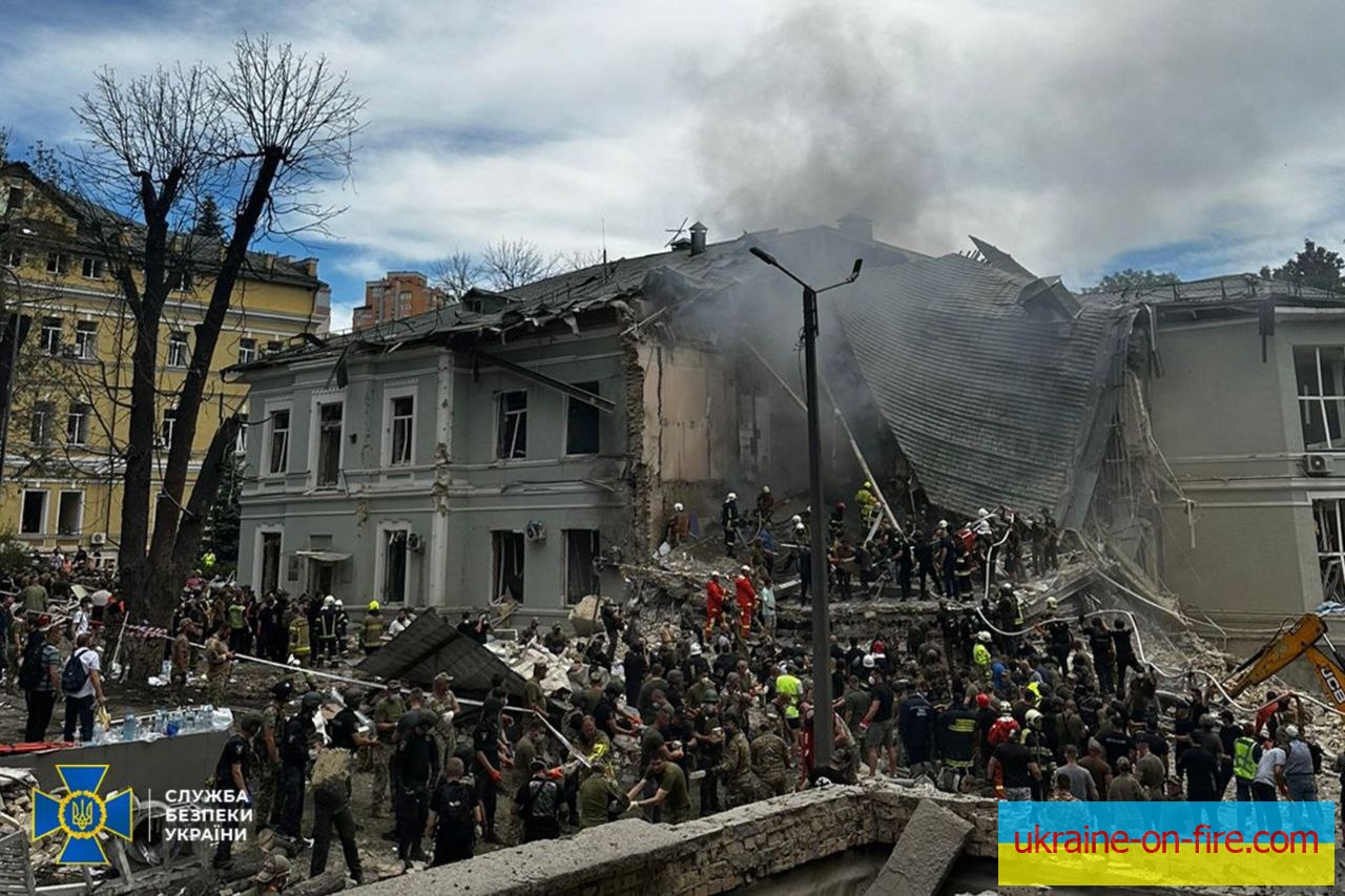 It appears there was indeed a direct hit on Ohmatdyt — not falling debris. ruSSians destroyed Ohmatdyt (Охматдит – ОХорона МАТеринства та ДИТинства – Ukraine’s main children’s hospital, short for “Protection of Motherhood and Childhood”), and if it was a direct hit, then this was the enemy missile’s intended target. The nature of destruction indicates this, and as now clarified, the strike hit the dialysis department, from where evacuating children quickly is simply impossible for understandable reasons. There’s already data confirming casualties there, but how many remains unclear.