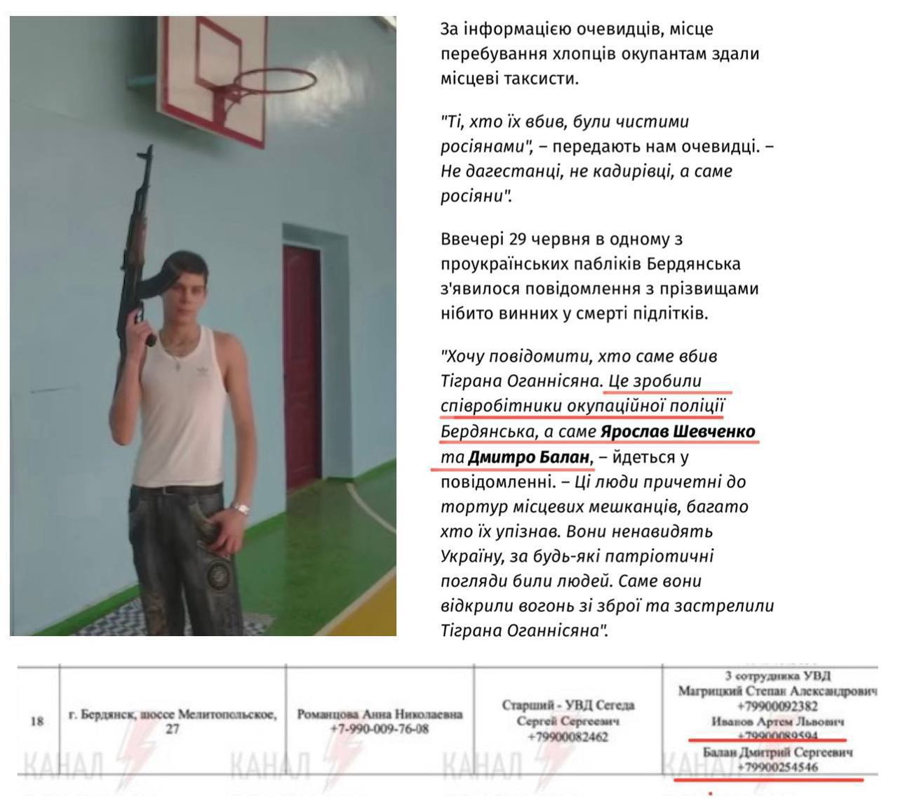 - Yaroslav Shevchenko, works in occupation police. Reportedly, he’s known for his cruel treatment of Berdyansk residents whom occupiers detain.