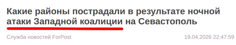Translation from Russian: the headline says nothing less than “Western coalition attacked”. They still can’t let into their brains the thought that Ukraine did all this, using Ukrainian-made strike weapons.